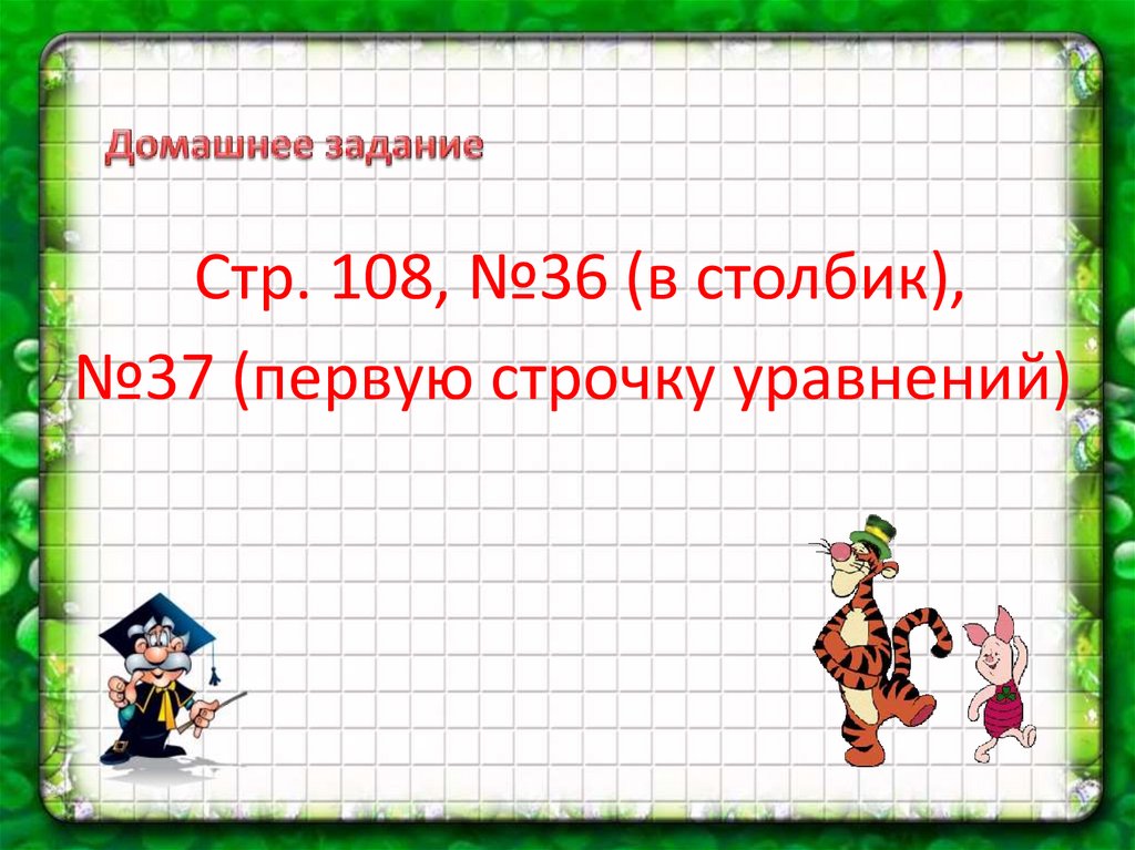Стр. 108, №36 (в столбик),№37 (первую строчку уравнений)