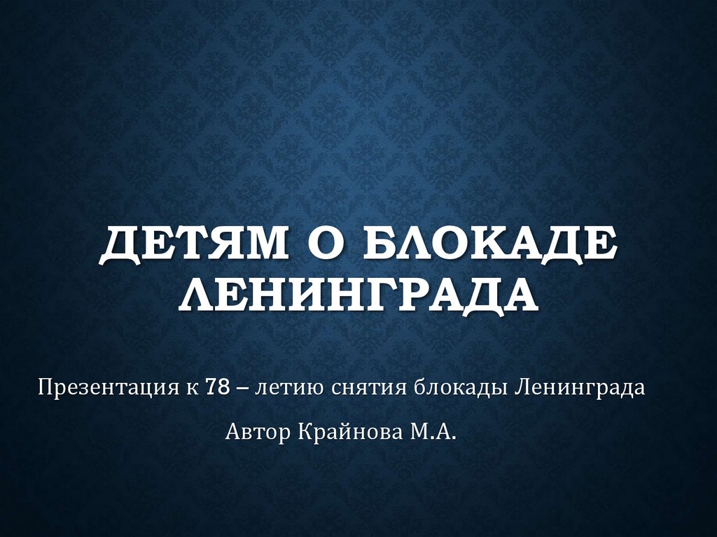 ДЕТЯМ О БЛОКАДЕЛЕНИНГРАДА