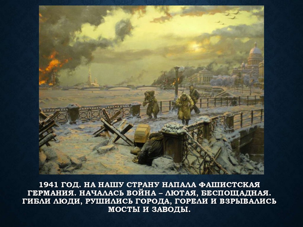 1941 ГОД. НА НАШУ СТРАНУ НАПАЛА ФАШИСТСКАЯГЕРМАНИЯ. НАЧАЛАСЬ ВОЙНА – ЛЮТАЯ, БЕСПОЩАДНАЯ.