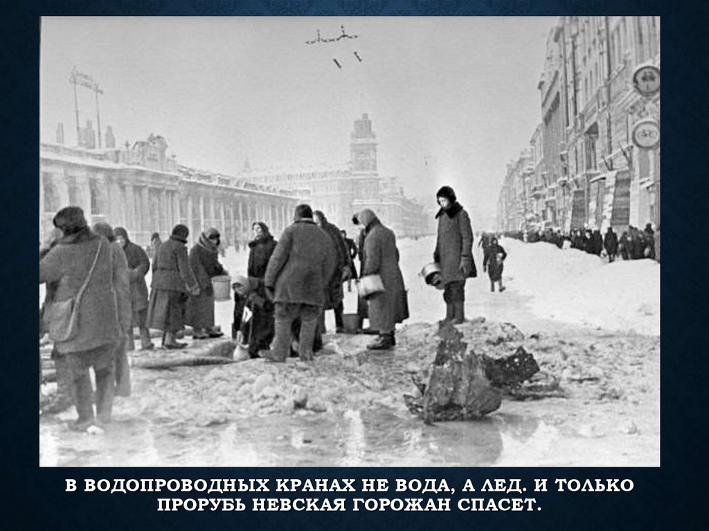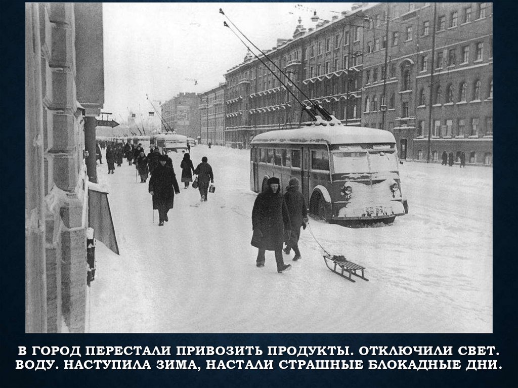 В ГОРОД ПЕРЕСТАЛИ ПРИВОЗИТЬ ПРОДУКТЫ. ОТКЛЮЧИЛИ СВЕТ.ВОДУ. НАСТУПИЛА ЗИМА, НАСТАЛИ СТРАШНЫЕ БЛОКАДНЫЕ ДНИ.