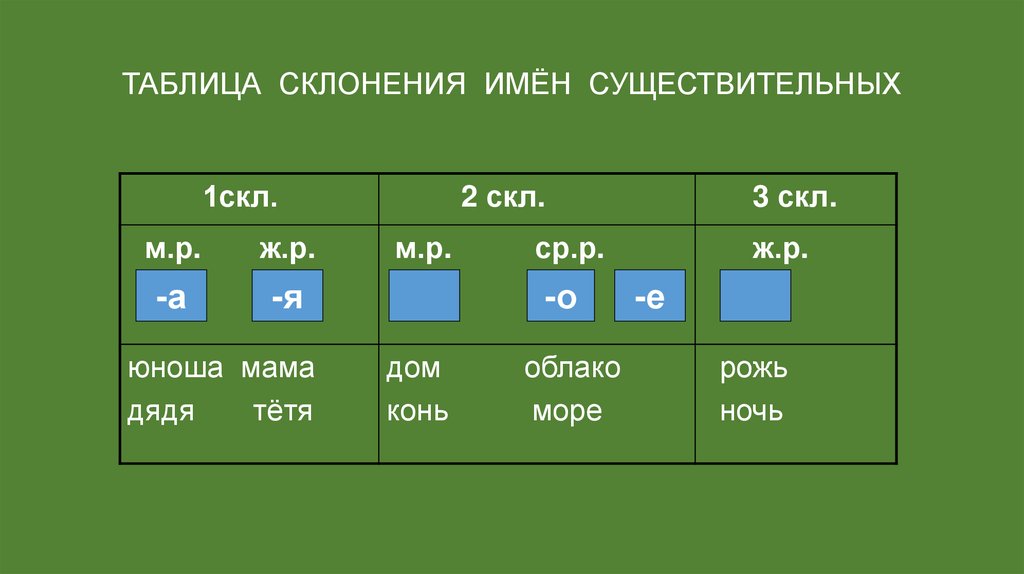 ТАБЛИЦА СКЛОНЕНИЯ ИМЁН СУЩЕСТВИТЕЛЬНЫХ1скл.