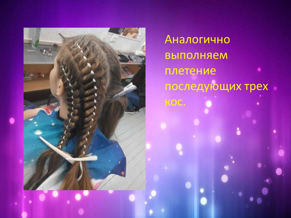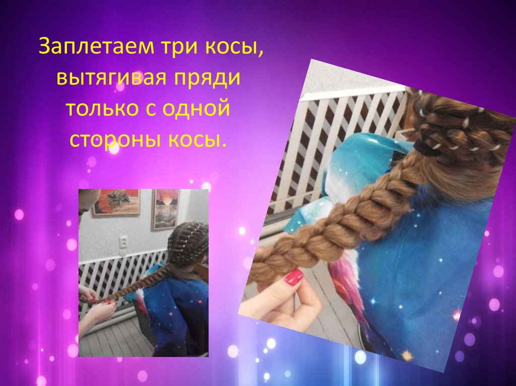 Заплетаем три косы,вытягивая пряди