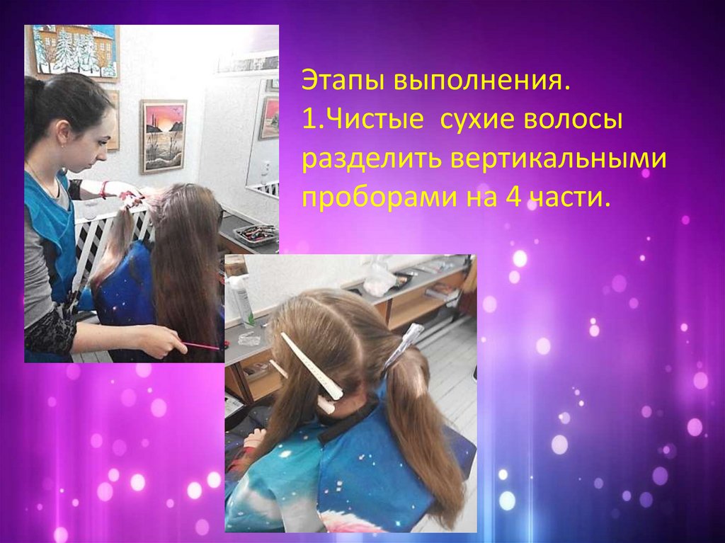 Этапы выполнения.1.Чистые сухие волосы