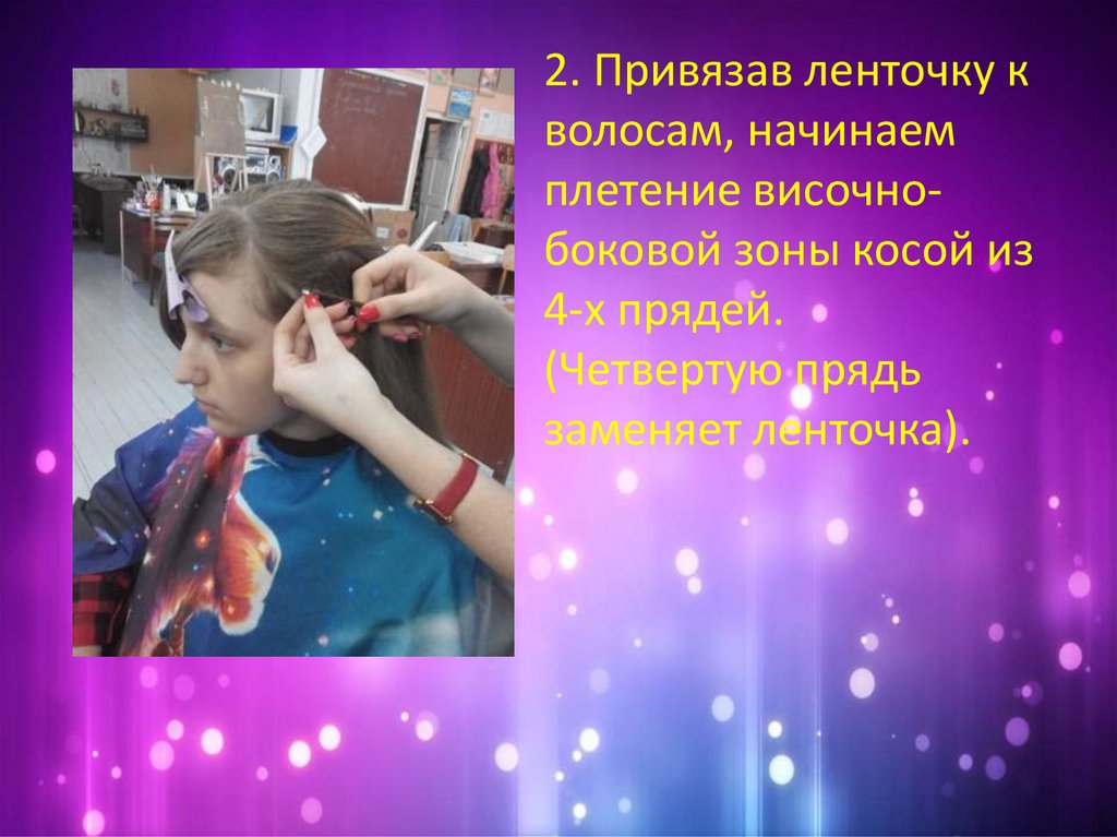 2. Привязав ленточку кволосам, начинаем