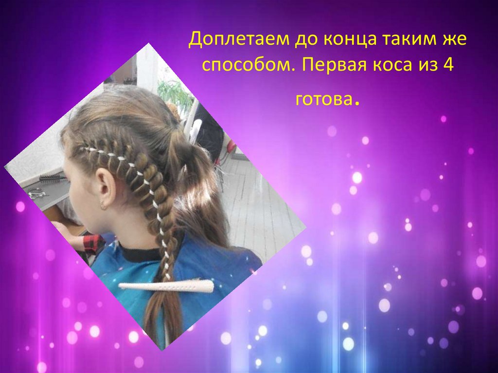 Доплетаем до конца таким жеспособом. Первая коса из 4