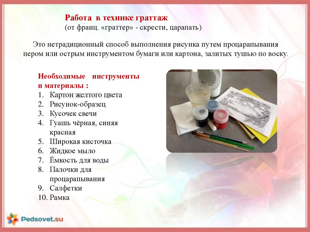 Это нетрадиционный способ выполнения рисунка путем процарапывания
