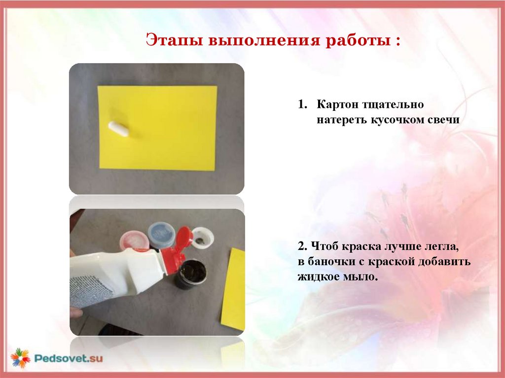 Этапы выполнения работы :1. Картон тщательно