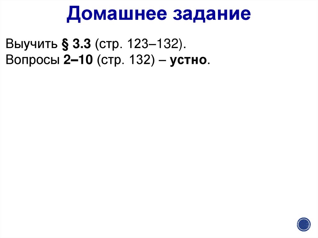 Домашнее заданиеВыучить § 3.3 (стр. 123–132).