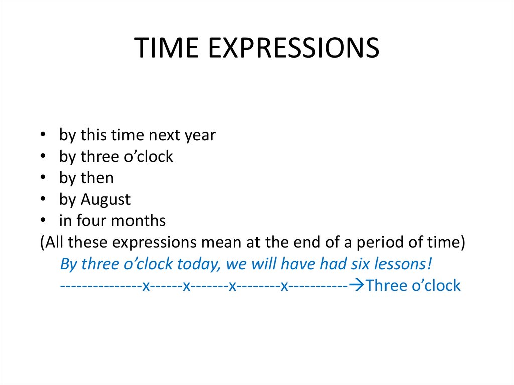 TIME EXPRESSIONS• by this time next year