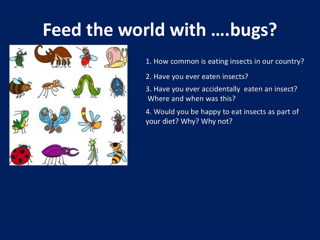 Feed the world with ….bugs?1. How common is eating insects in our country?