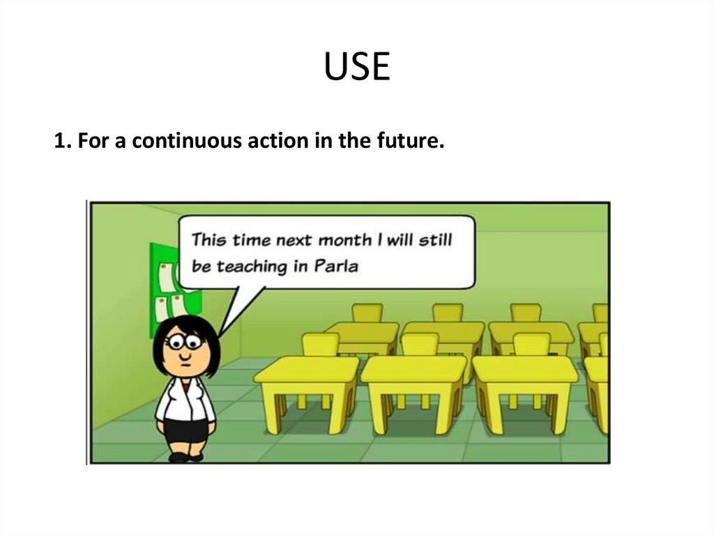 USE1. For a continuous action in the future.