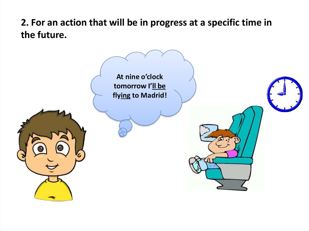 2. For an action that will be in progress at a specific time inthe future.
