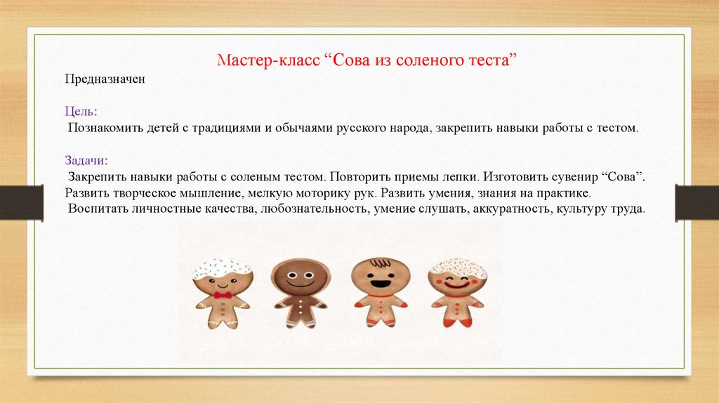 Мастер-класс “Сова из соленого теста”Предназначен