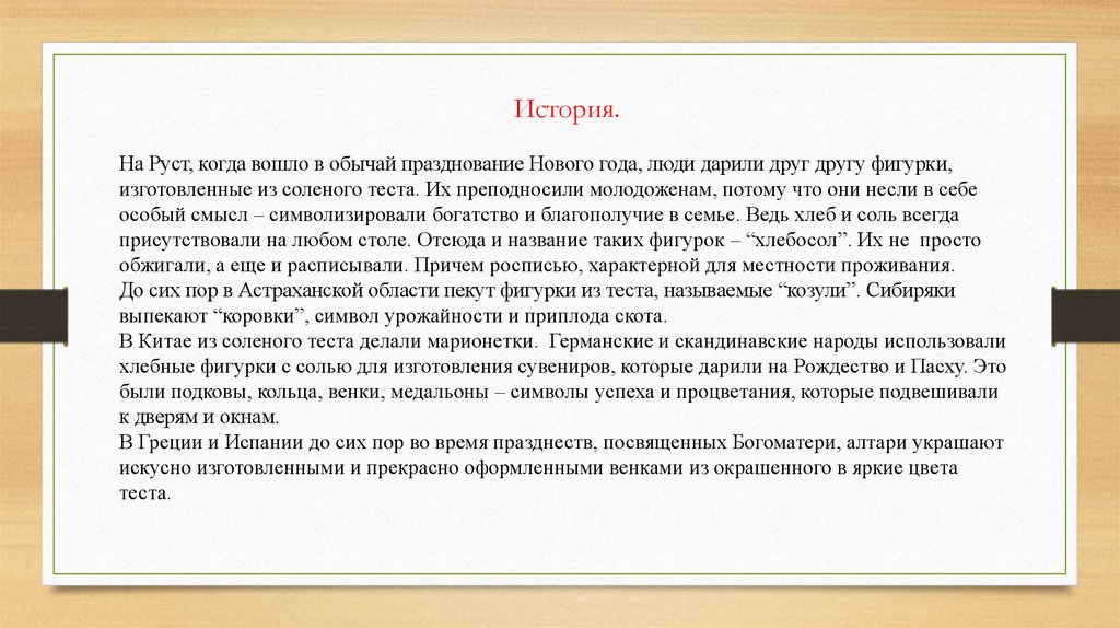 История.На Руст, когда вошло в обычай празднование Нового года, люди дарили друг другу фигурки,