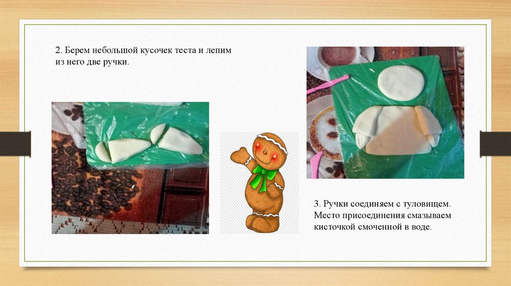 2. Берем небольшой кусочек теста и лепимиз него две ручки.