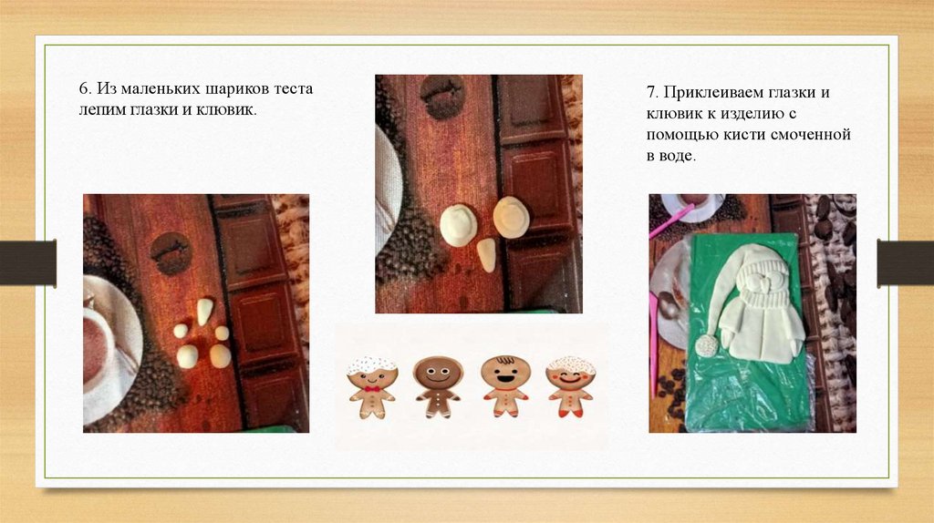 6. Из маленьких шариков тесталепим глазки и клювик.