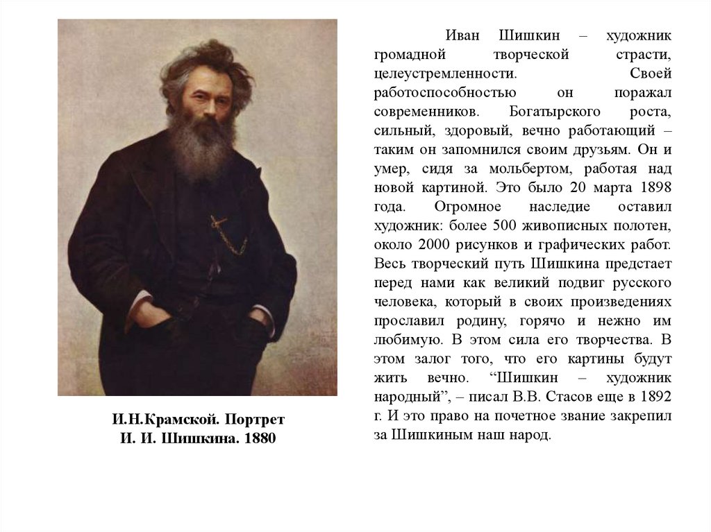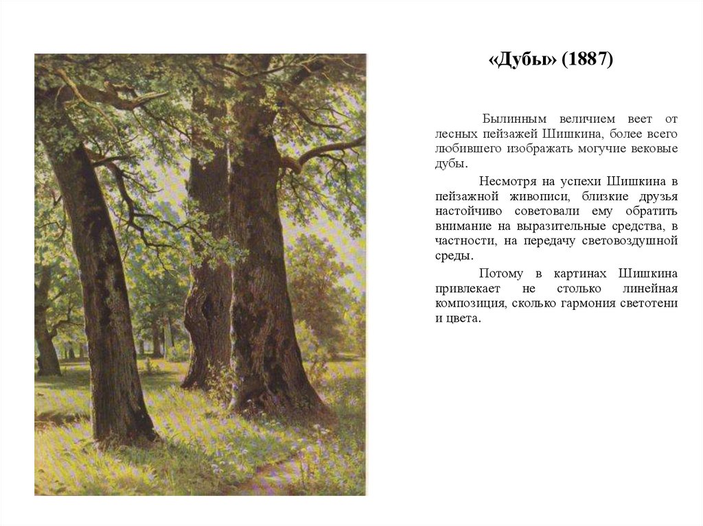 говорит о манере живописи, о творческом методе, свойственном именно Шишкину».