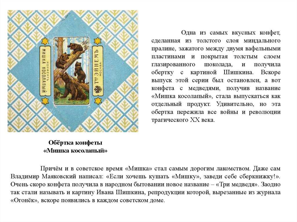 картиной в России: шишкинские мишки смотрят на нас с конфетных фантиков,