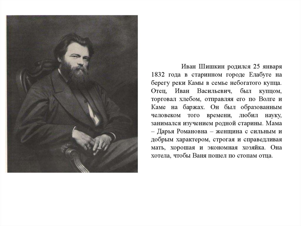 Иван Шишкин родился 25 января1832 года в старинном городе Елабуге на