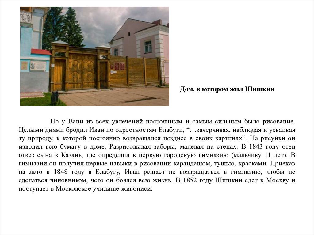 Дом, в котором жил ШишкинНо у Вани из всех увлечений постоянным и самым сильным было рисование.