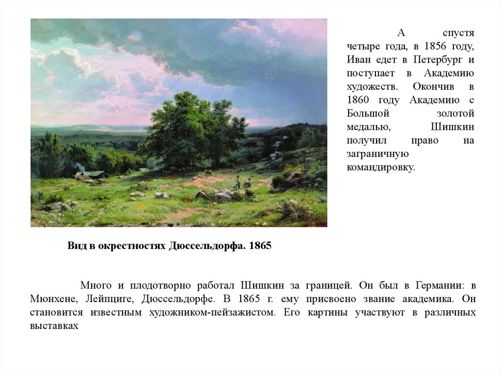 Много и плодотворно работал Шишкин за границей. Он был в Германии: в