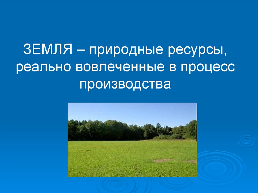 ЗЕМЛЯ – природные ресурсы,реально вовлеченные в процесс