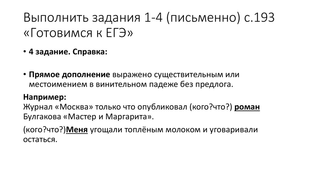 Выполнить задания 1-4 (письменно) с.193«Готовимся к ЕГЭ»