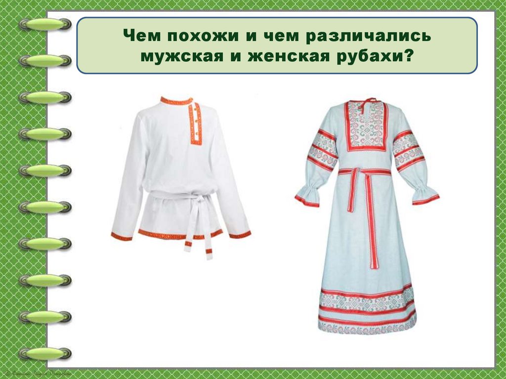 Чем похожи и чем различалисьмужская и женская рубахи?