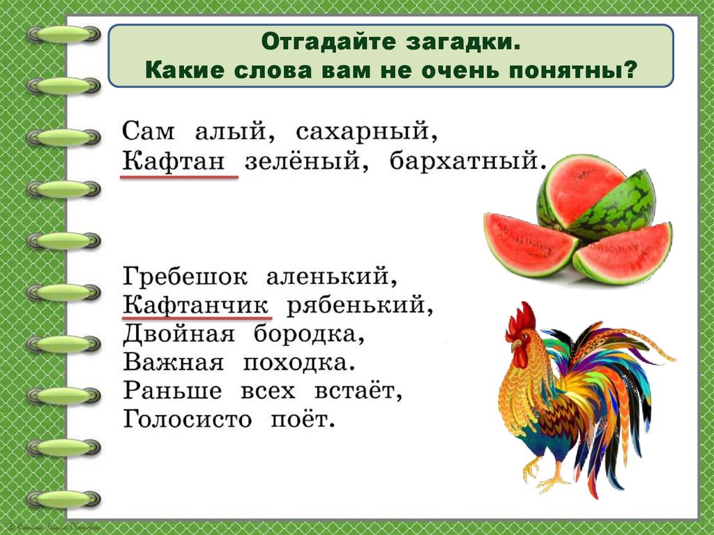 Отгадайте загадки.Какие слова вам не очень понятны?