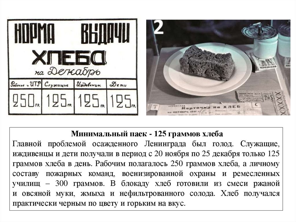 граммов хлеба в день. Рабочим полагалось 250 граммов хлеба, а личному