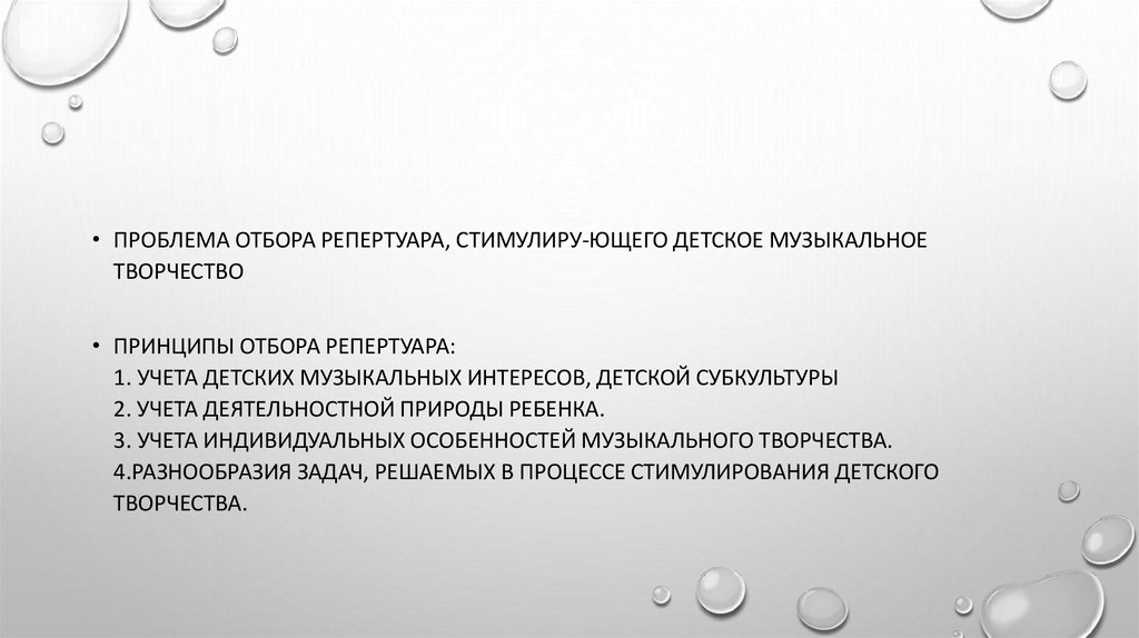 • ПРОБЛЕМА ОТБОРА РЕПЕРТУАРА, СТИМУЛИРУ-ЮЩЕГО ДЕТСКОЕ МУЗЫКАЛЬНОЕТВОРЧЕСТВО