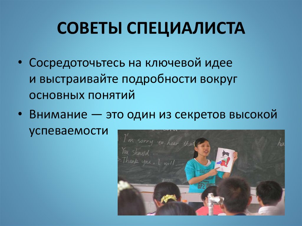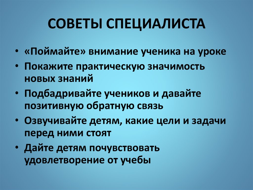 СОВЕТЫ СПЕЦИАЛИСТА• «Поймайте» внимание ученика на уроке
