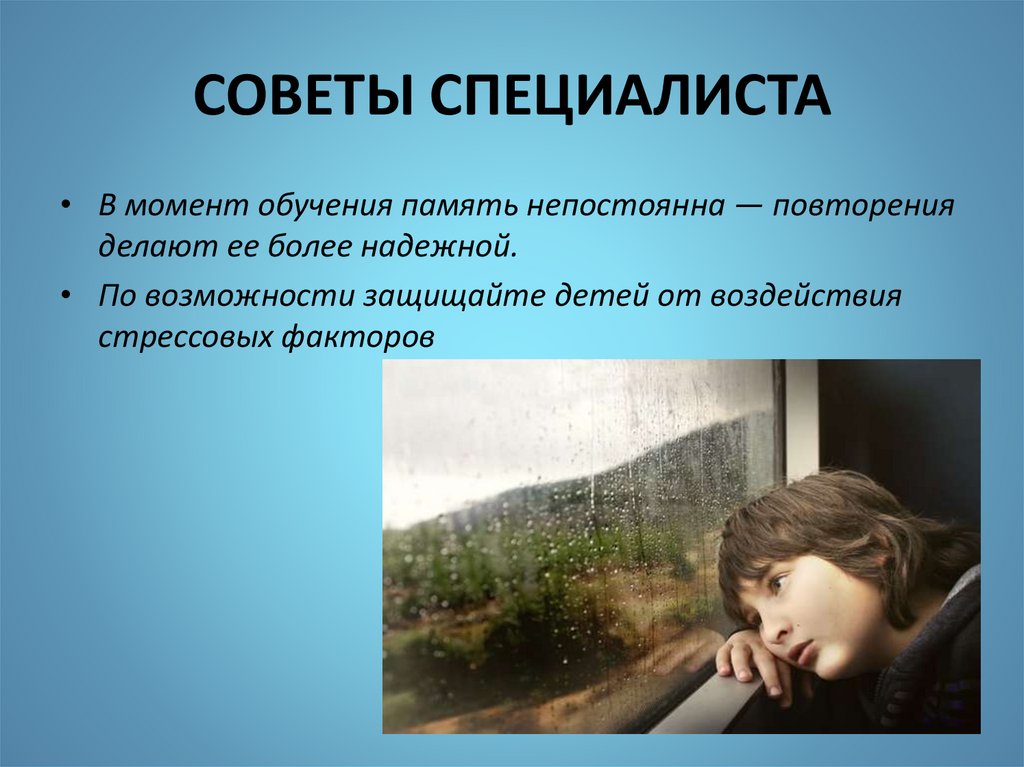 СОВЕТЫ СПЕЦИАЛИСТА• В момент обучения память непостоянна — повторения