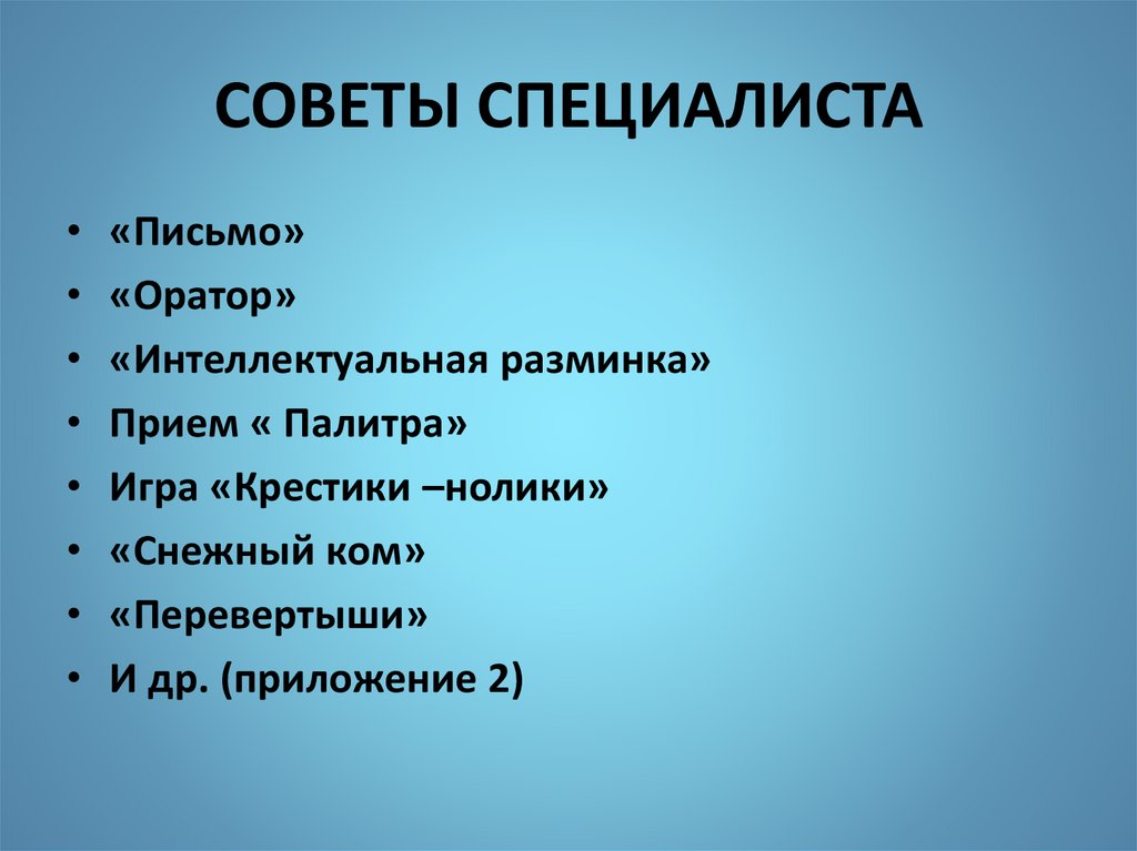 СОВЕТЫ СПЕЦИАЛИСТА«Письмо»