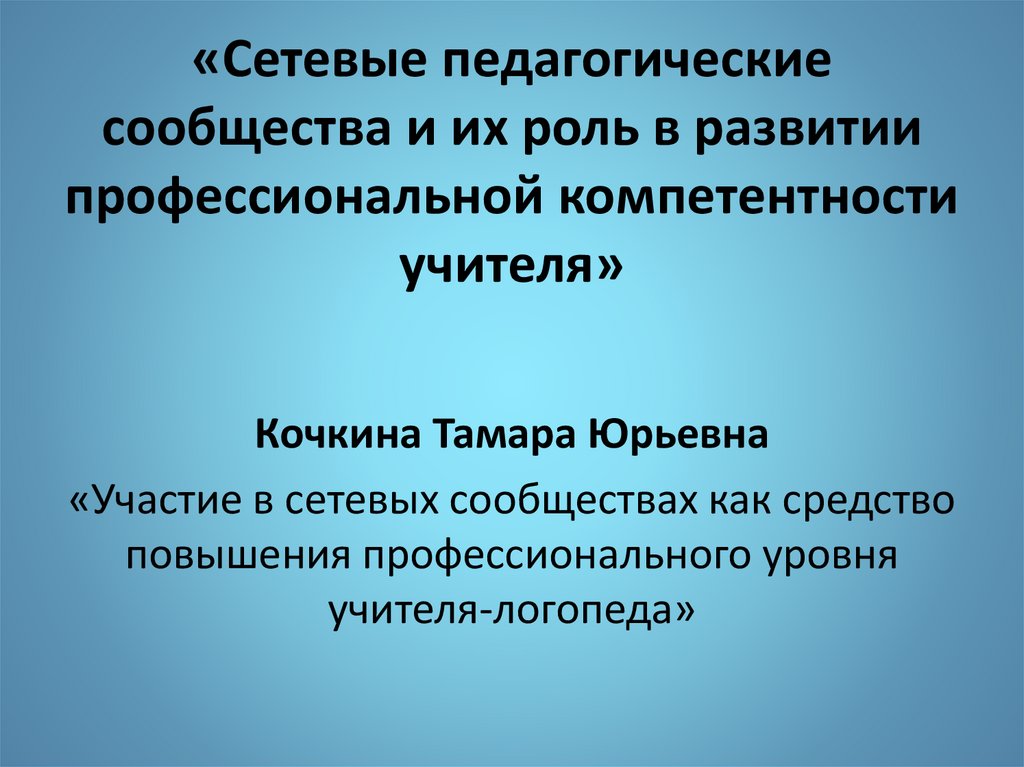 - «Сетевые педагогические сообщества и их роль в развитии профессиональной компетентности