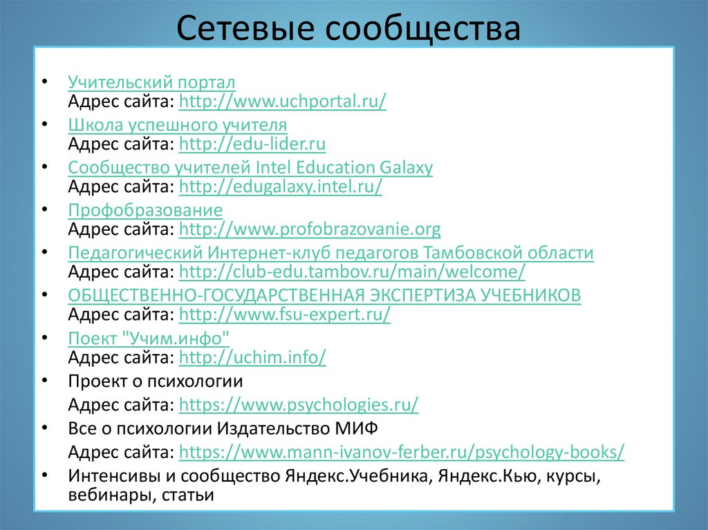 Сетевые сообщества• Учительский портал