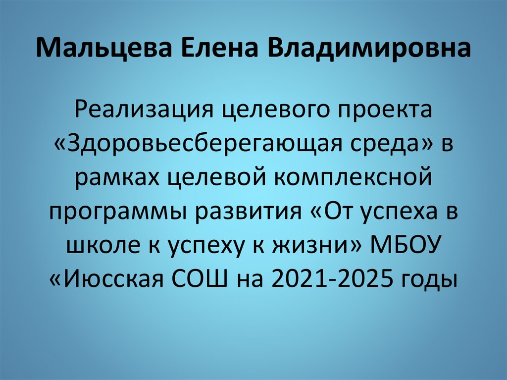 Мальцева Елена ВладимировнаРеализация целевого проекта
