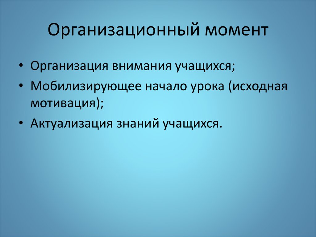Организационный момент• Организация внимания учащихся;