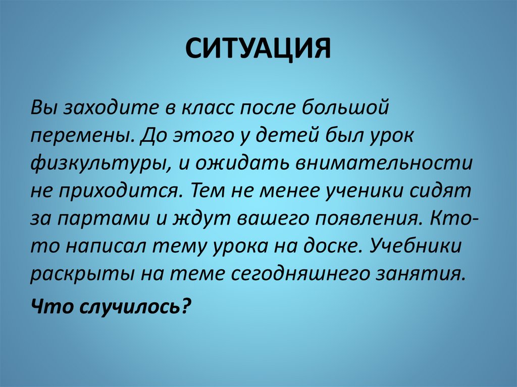 СИТУАЦИЯВы заходите в класс после большой