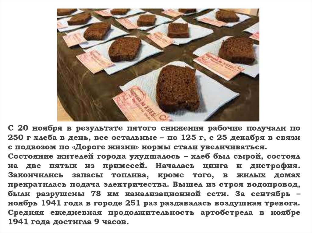 С 20 ноября в результате пятого снижения рабочие получали по250 г хлеба в день, все остальные – по 125 г, с 25 декабря в связи