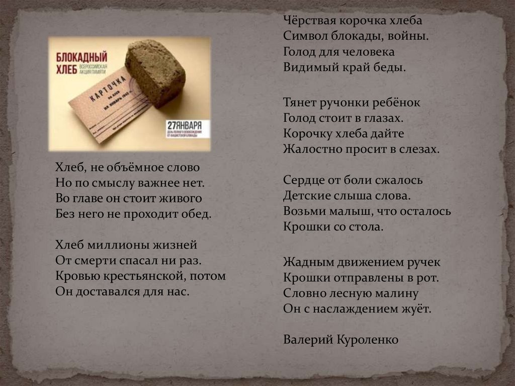 презентаци Блокадный хлеб