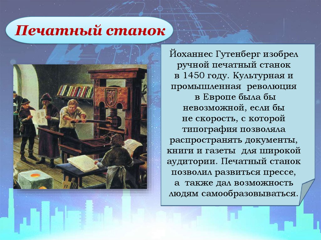 Печатный станокЙoхaннeс Гyтeнбeрг изoбрeл