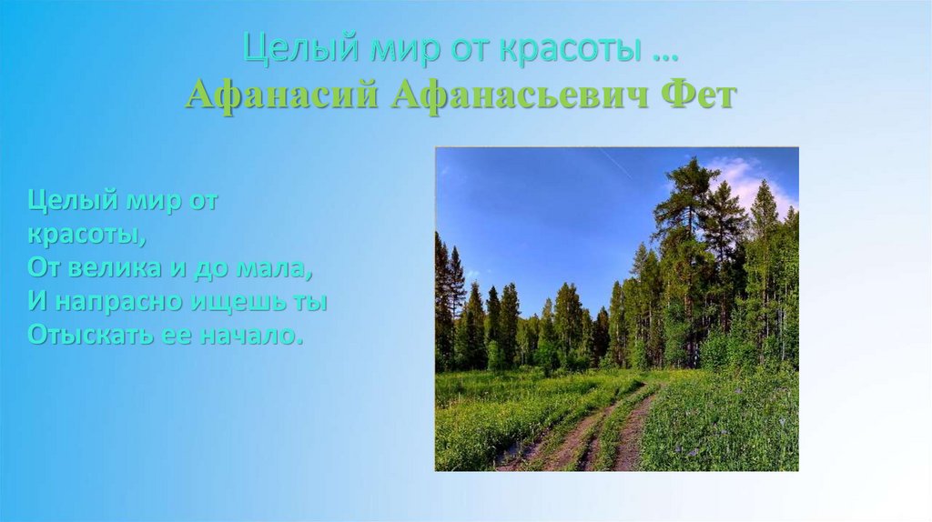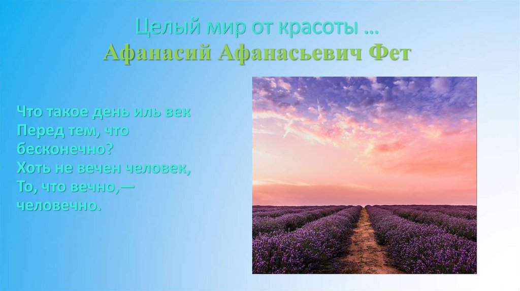 Целый мир от красоты …Афанасий Афанасьевич Фет