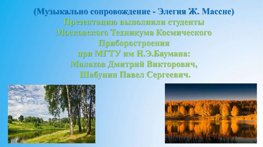 (Музыкально сопровождение - Элегия Ж. Массне)Презентацию выполнили студенты