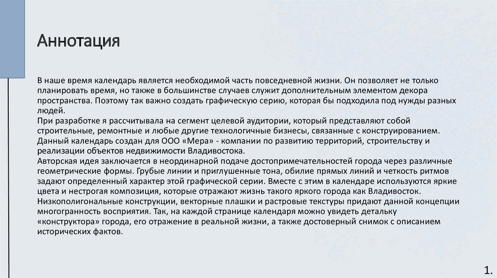 Данный календарь создан для ООО «Мера» - компании по развитию территорий, строительству и
