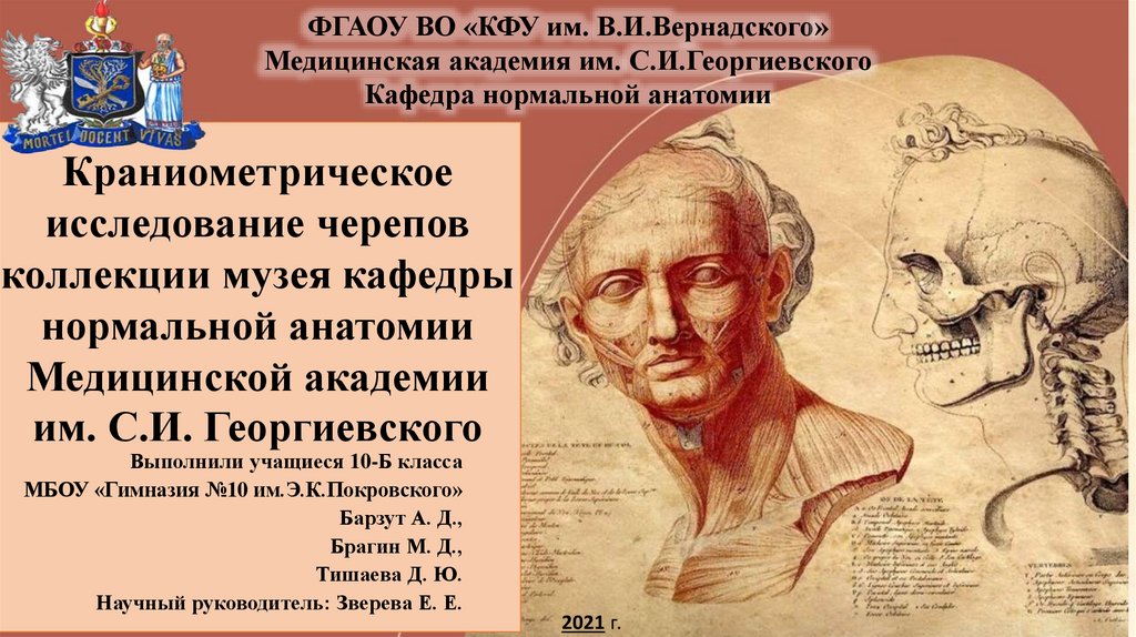Краниометрическое исследование черепов коллекции музея кафедры нормальной анатомии