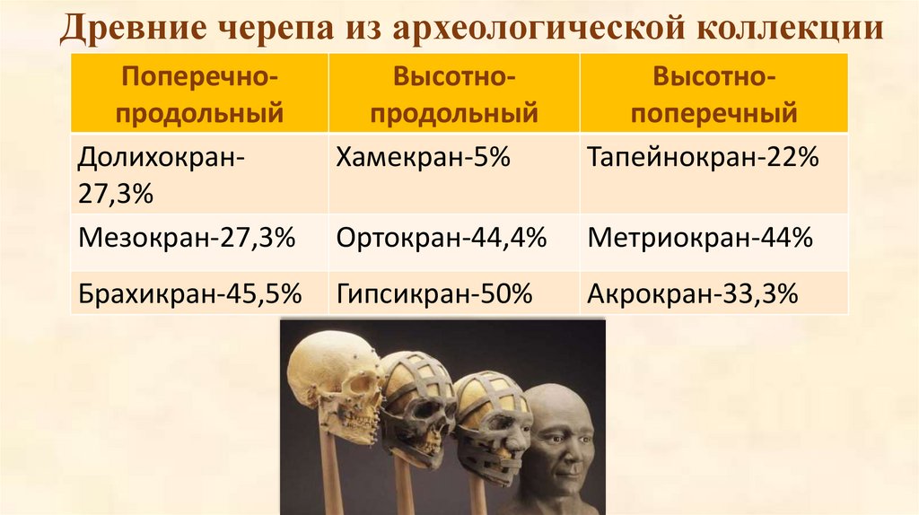 Древние черепа из археологической коллекцииПоперечнопродольный