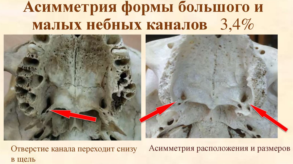 Асимметрия формы большого ималых небных каналов 3,4%