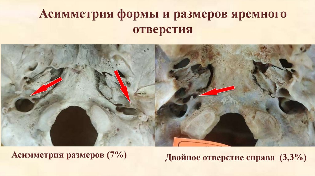 Асимметрия формы и размеров яремногоотверстия