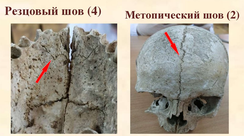 Резцовый шов (4)Метопический шов (2)